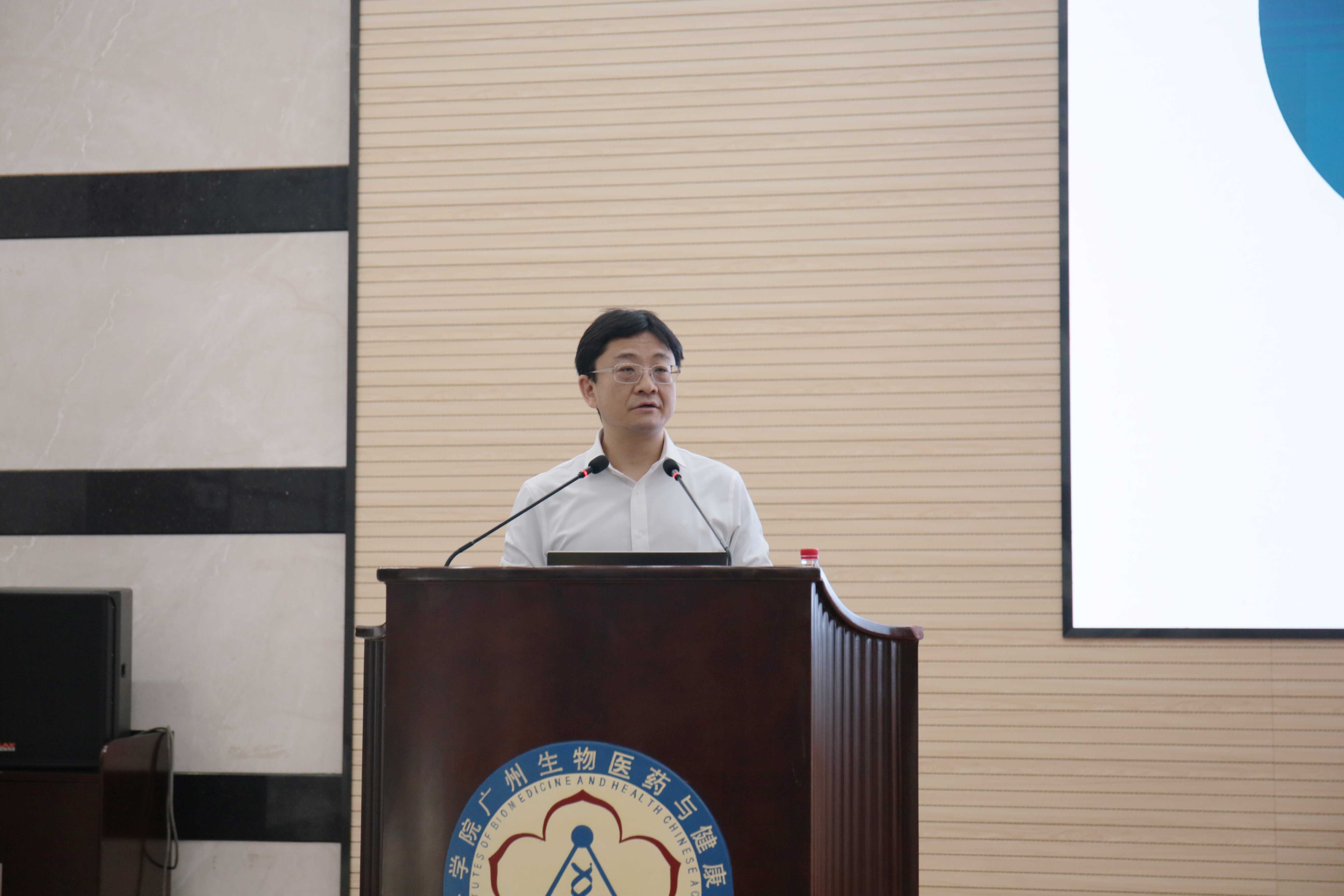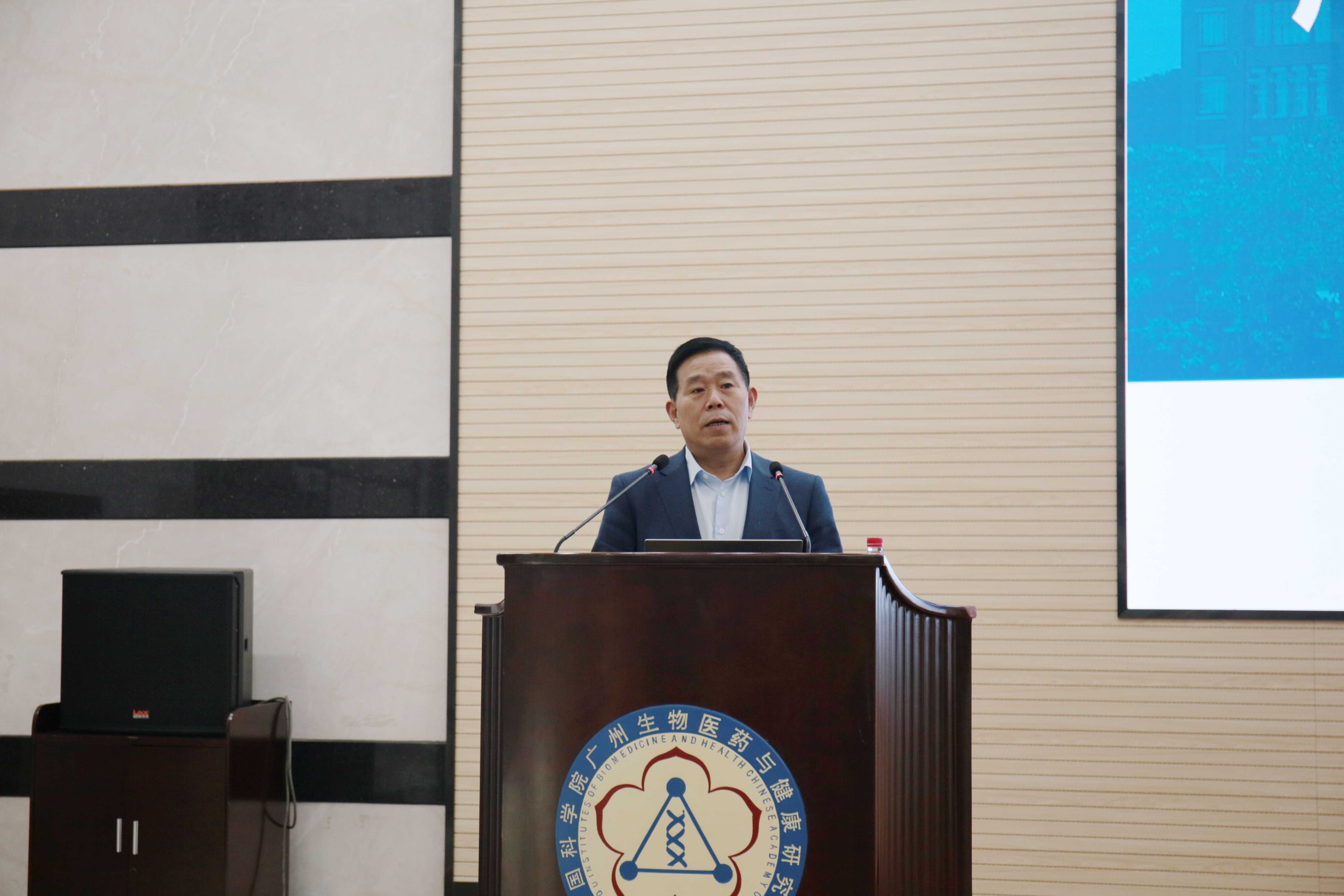 黄从利首先介绍了考核评议的要求和相关注意事项。随后,孙飞副院长(主持工作)代表广州健康院领导班子作年度工作总结报告。孙飞系统回顾了研究院在2025年围绕国家战略科技力量使命,在党建、科研攻关、平台建设、人才引育及成果转化等方面取得的系列突破性进展,展现出蓬勃的发展态势与强劲的创新动能。