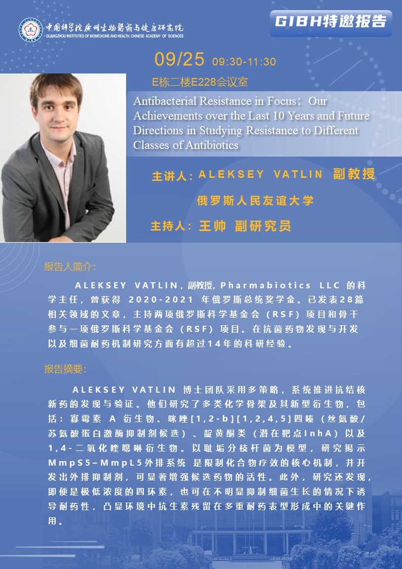 2025年9月25日特邀报告:Antibacterial Resistance in Focus:Our Achievements over the Last 10 Years and Future Directions in Studying Resistance to Different Classes of Antibiotics