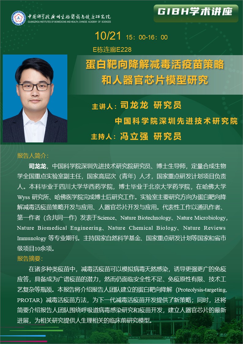 2025年10月21日学术讲座: 蛋白靶向降解减毒活疫苗策略和人器官芯片模型研究