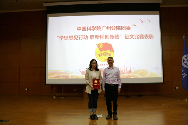 在中国科学院广州分院团委举办的纪念五四运动104周年表彰大会暨“学思想见行动 启新程创新绩”演讲比赛中,广州健康院团委书记黄博纯同志撰写的题为《筑梦湾区——开辟华南生物医药研究新天地》的征文在众多优秀作品中脱颖而出,荣获一等奖。在演讲比赛环节,研究院周广琦、潘路遥、仇童、孙珍珠四名选手演讲的内容正是黄博纯的获奖征文,他们凭借巧妙的构思、青春的形象和精彩的演绎获得演讲比赛一等奖。