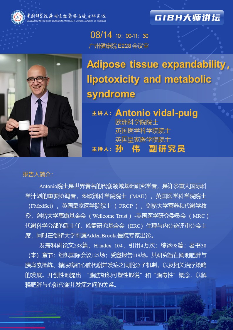 2025年8月14日大师讲坛:Adipose tissue expandability, lipotoxicity and metabolic syndrome
