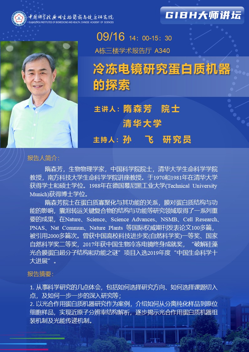 2025年9月16日大师讲坛:冷冻电镜研究蛋白质机器的探索