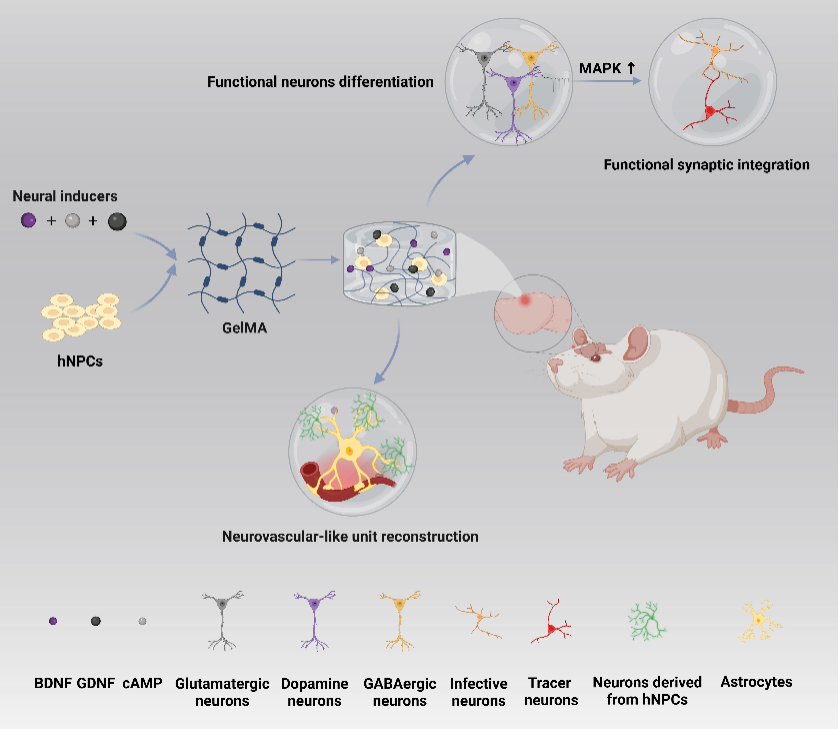 开发新型鸡尾酒水凝胶促进人源功能性中间神经元再生用于脑损伤治疗