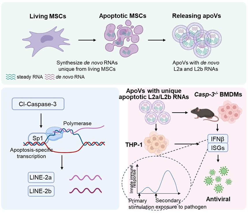 广州健康院合作揭示凋亡细胞从头合成特异L2a/L2b RNA发挥抗病毒功能