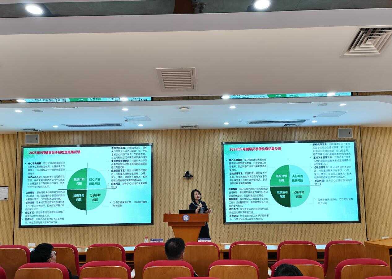 随后,教育处负责人郑小洁通报《辅导员工作手册》核查情况,明确记录规范并提出改进建议,分享学生思政及心理健康教育工作实用方法与技巧,切实推动学生管理与心理健康工作向标准化、精细化迈进。