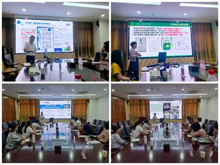 交流会上,杨子银对徐海一行的到来表示热烈欢迎。双方分别围绕各自开展的特色科学教育工作、展馆建设、工作规划等内容作汇报交流。广州健康院综合处副处长王炯坤、综合处信息宣传主管胡冰鑫分别汇报了广州健康院的科学教育工作进展和专业科学博物展馆的规划建设方案;华南国家植物园园地管理处科普旅游部副部长谭如冰汇报了园地管理处的系列科普成果;鼎湖山国家级自然保护区管理局科教科科长彭丽芳汇报了科学教育“鼎湖山模式”的探索和实践。