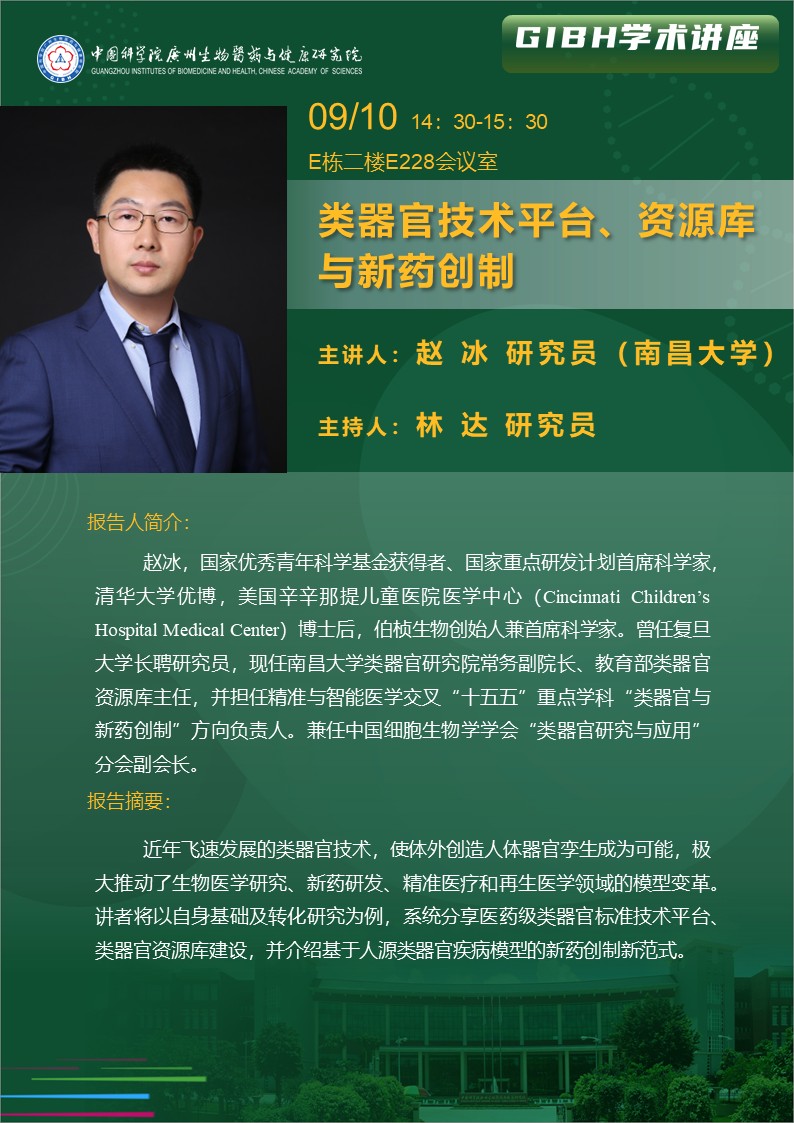 2025年9月10日学术讲座:类器官技术平台、资源库与新药创制
