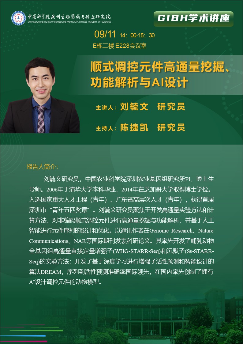 2025年9月11日学术讲座: 顺式调控元件高通量挖掘、功能解析与AI设计