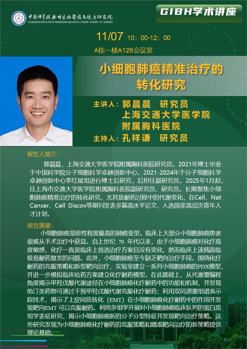 2025年11月7日学术讲座:小细胞肺癌精准治疗的转化研究