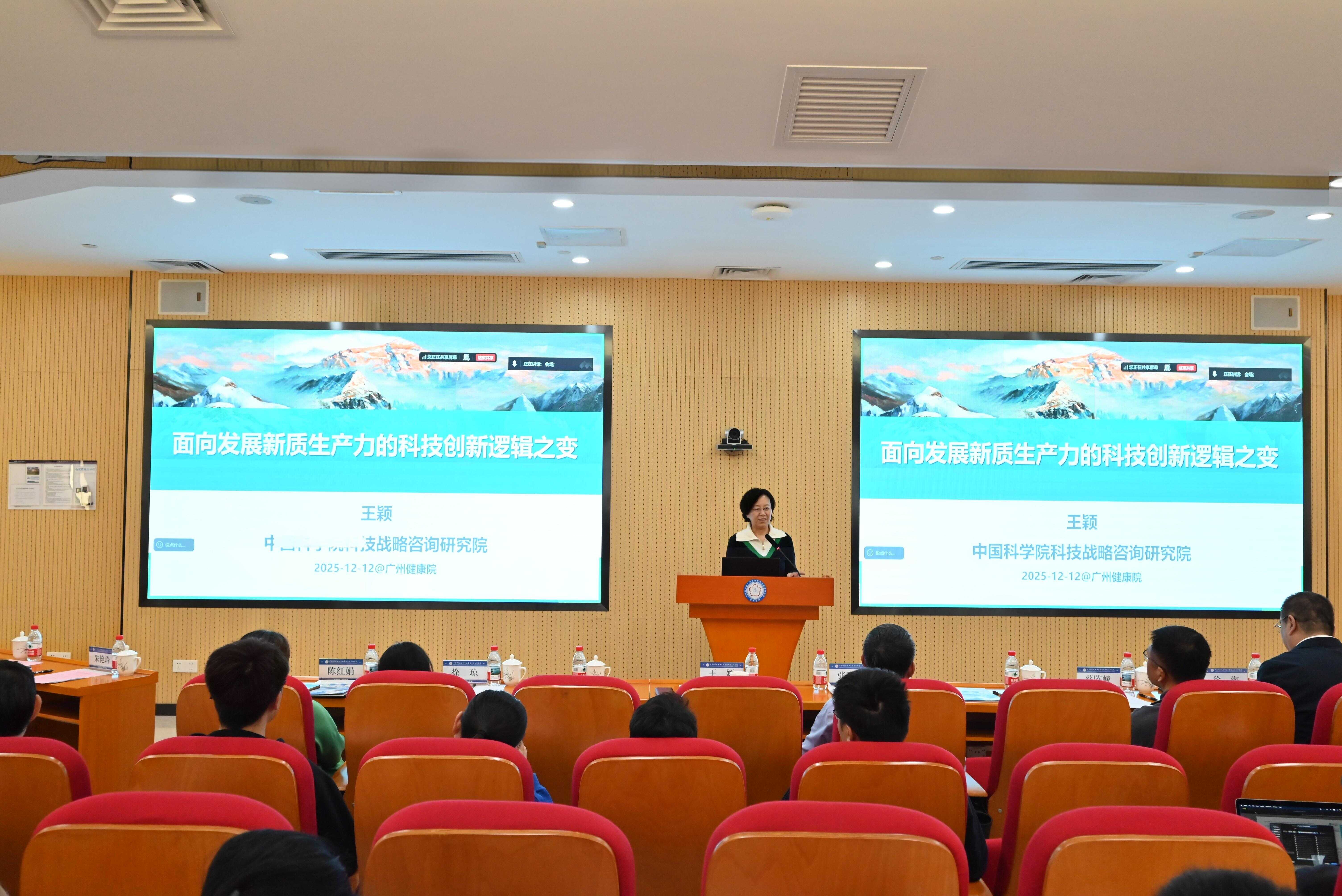 会议特邀中国科学院科技战略咨询研究院研究员王颖作专题报告。广州健康院党委书记、副院长张鸿翔,党委副书记、纪委书记徐海,副院长蔡陈崚出席会议。广州健康院党委委员、学生思政工作领导小组、教育工作领导小组、课程思政工作小组,以及全体研究生导师、兼职辅导员、心理联络员、研究生会成员、心理委员等100余人参会。会议由徐海、蔡陈崚分段主持。