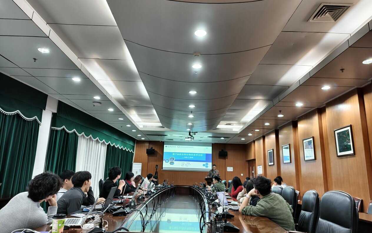课程为期四周,聚焦R语言在生物信息学中的实际应用,系统涵盖基础语法、数据结构、科研作图,以及转录组分析、单细胞测序及机器学习在多组学整合分析等内容。刘景磊结合其行业与科研经验,以清晰易懂的方式讲解知识要点,并同步开展实操教学。课堂上互动踊跃,同学们围绕技术难点积极提问,刘景磊逐一细致解答、耐心指导操作细节。他同时表示非常乐于分享经验,助力学弟学妹成长。