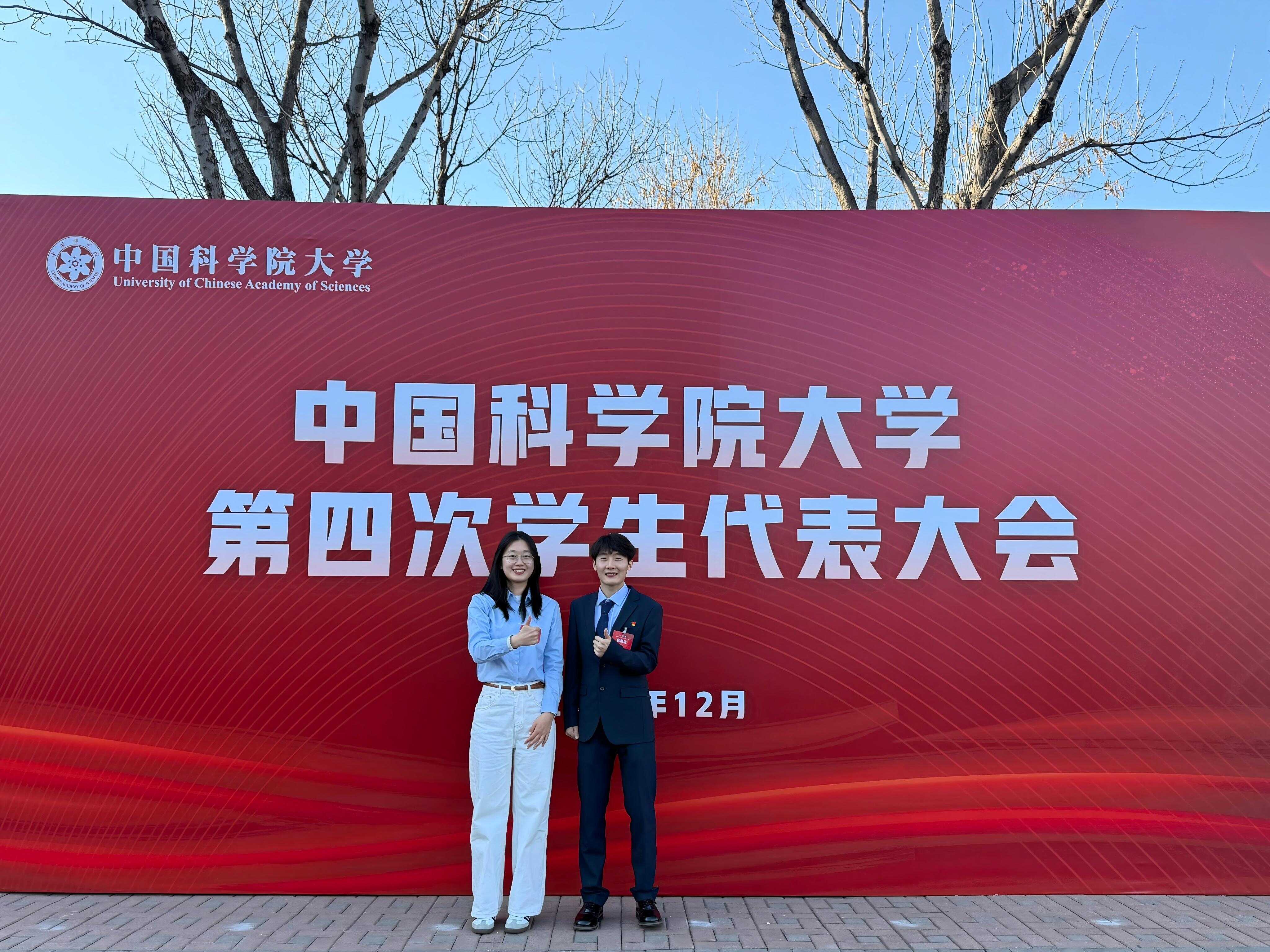 12月27日,中国科学院大学(以下简称“国科大”)第四次学生代表大会在北京雁栖湖校区召开。来自全校140家培养单位的150余名学生代表参会。广州健康院第十八届研究生会主席、2024级硕士生张少伟和2025级集中教学硕士班班长郭子涵作为正式代表参加会议。