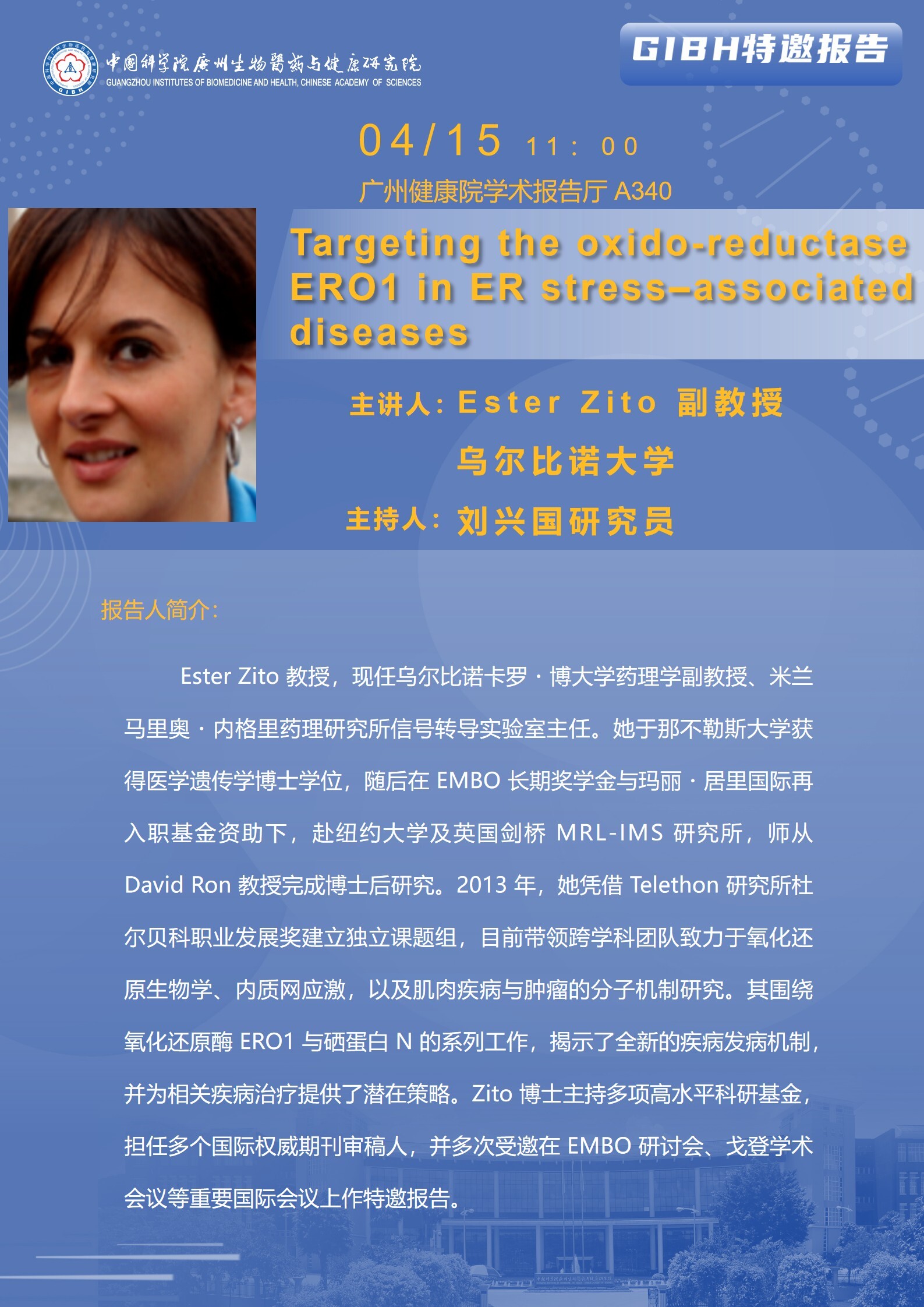 2026年4月15日特邀报告:Targeting the oxido-reductase ERO1 in ER stress–associated diseases