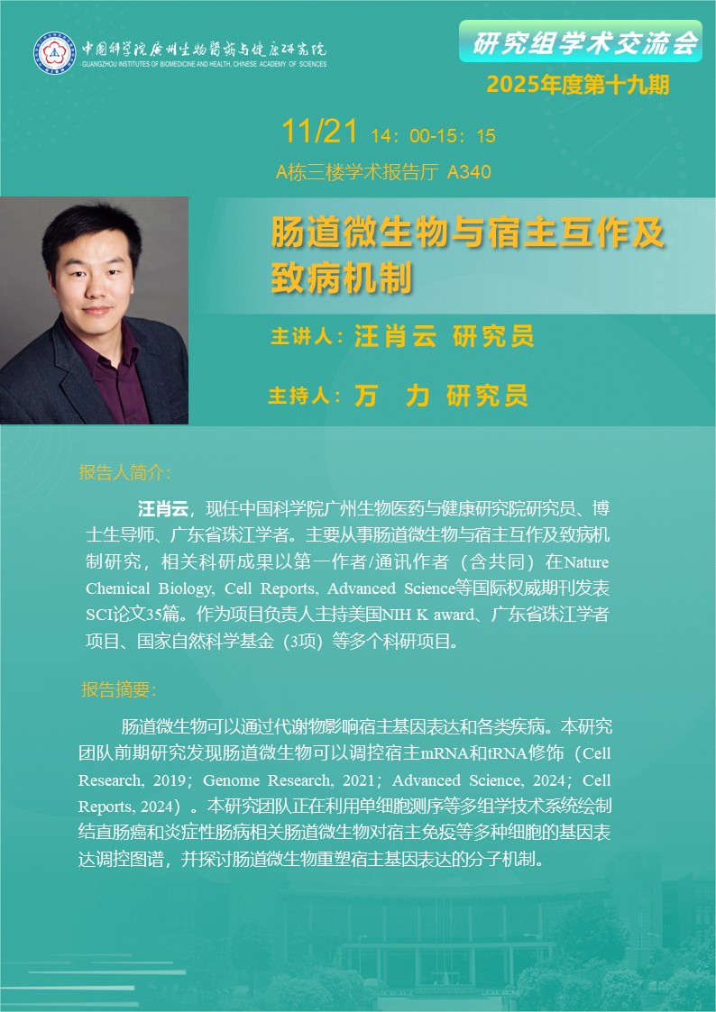 2025年11月21日研究组学术交流会(2025年度第十九期):肠道微生物与宿主互作及致病机制