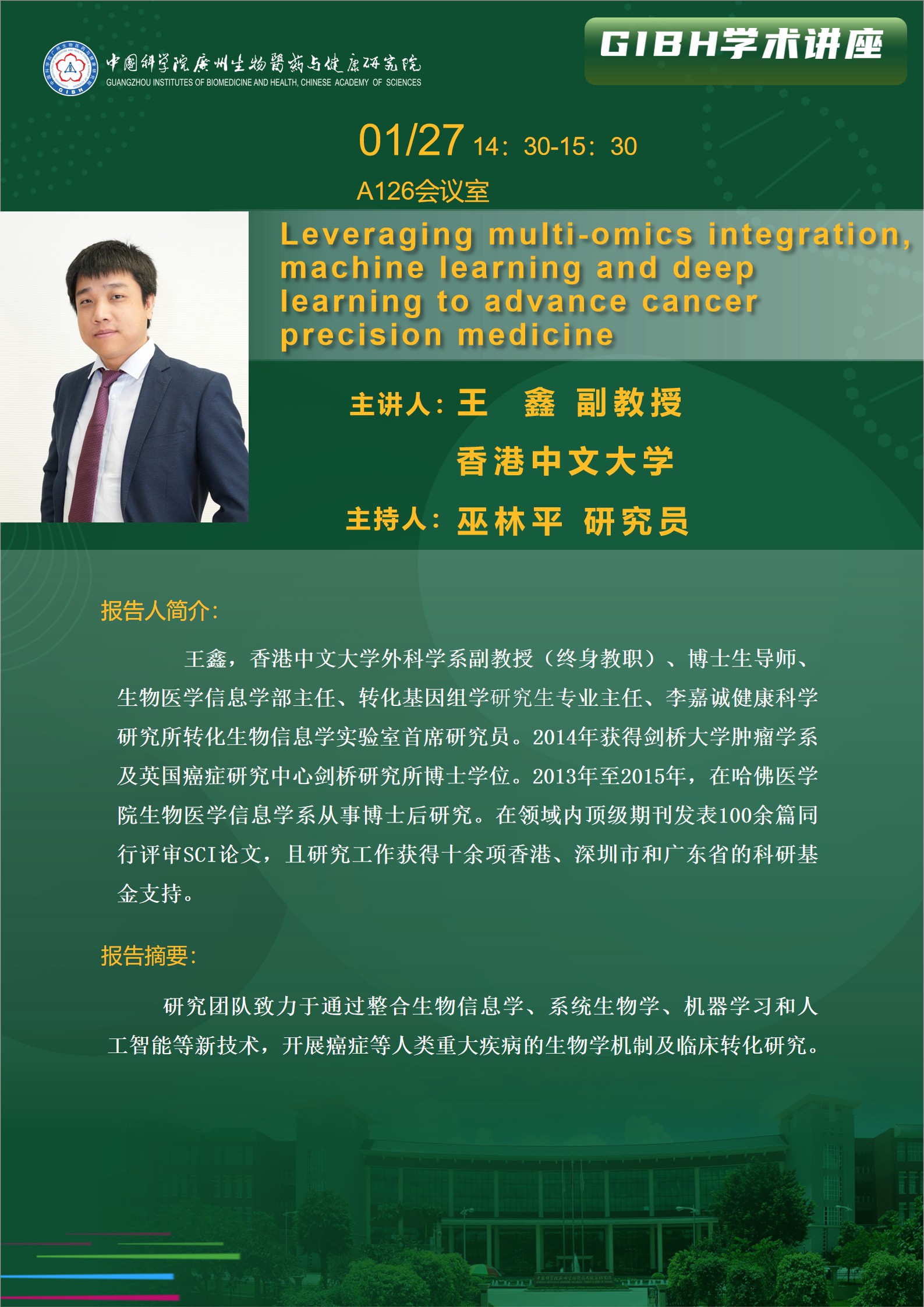 2026年1月27日学术讲座: Leveraging multi-omics integration, machine learning and deep learning to advance cancer precision medicine