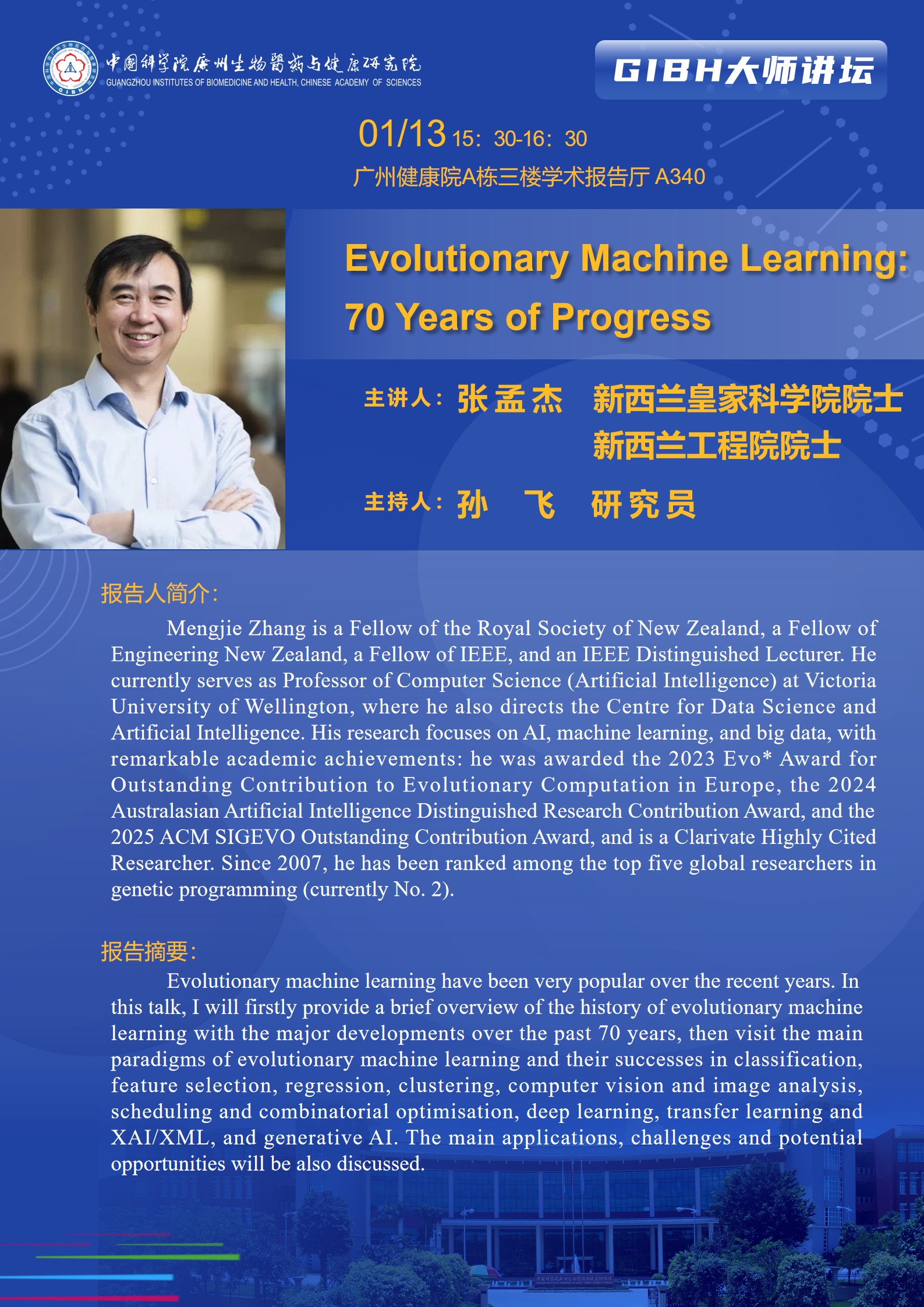 2026年1月13日大师讲坛:Evolutionary Machine Learning: 70 Years of Progress