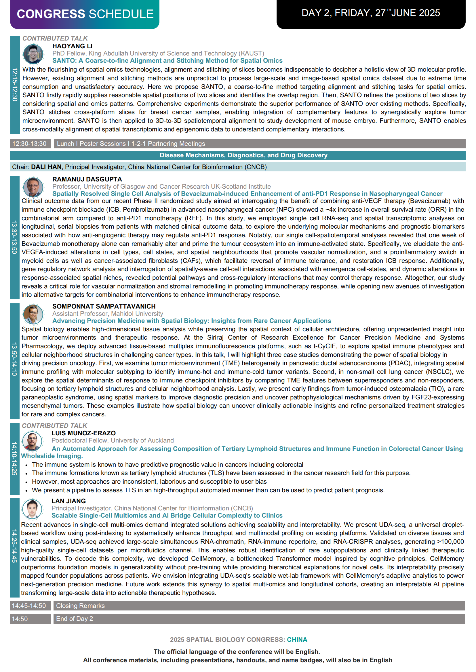 2、空间生物学数据处理和分析、生物信息和建模,探讨如何利用先进算法和模型挖掘空间数据价值。