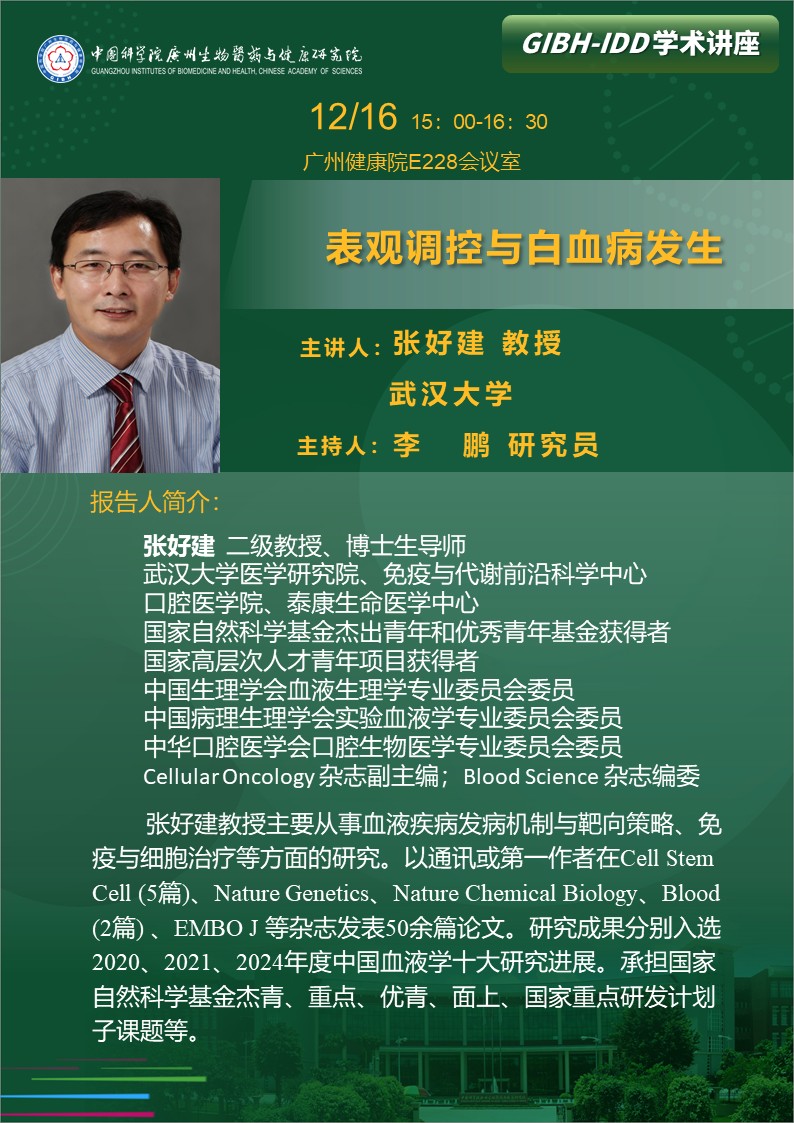 2025年12月16日学术讲座:表观调控与白血病发生