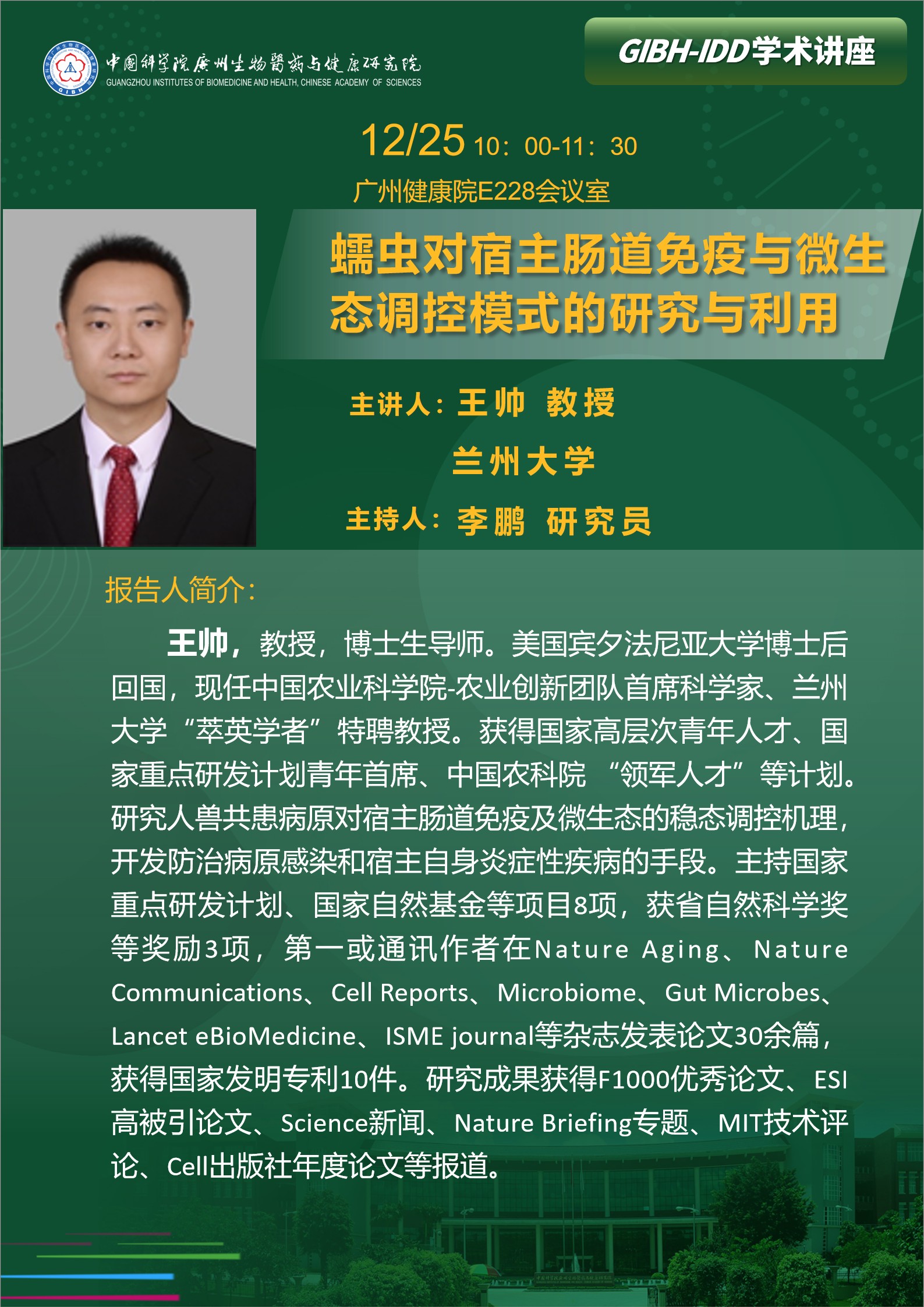 2025年12月25日学术讲座:蠕虫对宿主肠道免疫与微生态调控模式的研究与利用