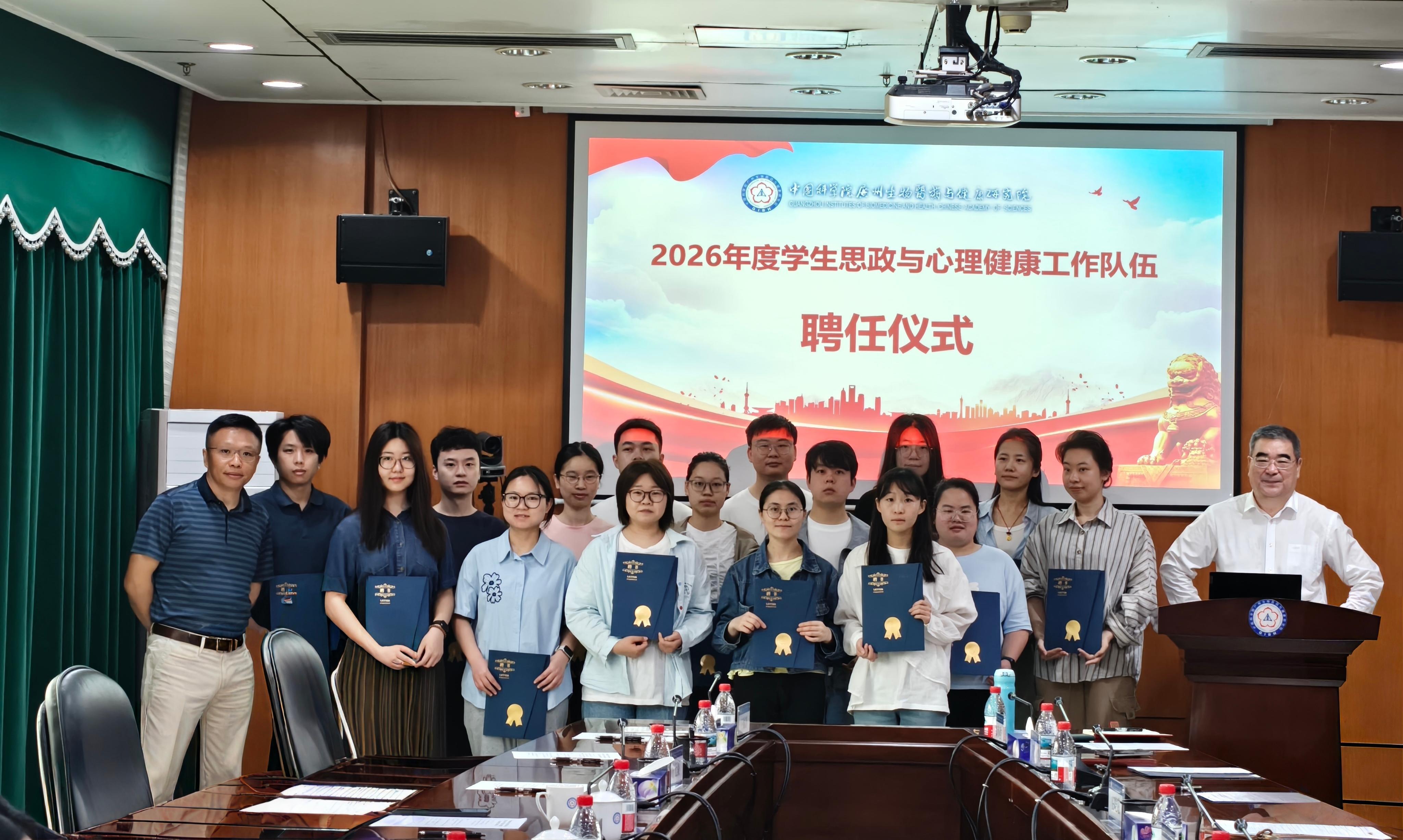 为深入贯彻党中央、中国科学院关于学生思政教育和心理健康工作的决策部署,切实筑牢育人根基,3月24日,广州健康院召开2026年学生思想政治工作领导小组会议暨学生思想政治工作队伍聘任部署会,广州健康院学生思想政治工作领导小组成员、教育处工作人员、兼职辅导员及学生心理委员等参加会议。会议由广州健康院党委副书记、纪委书记徐海主持。
